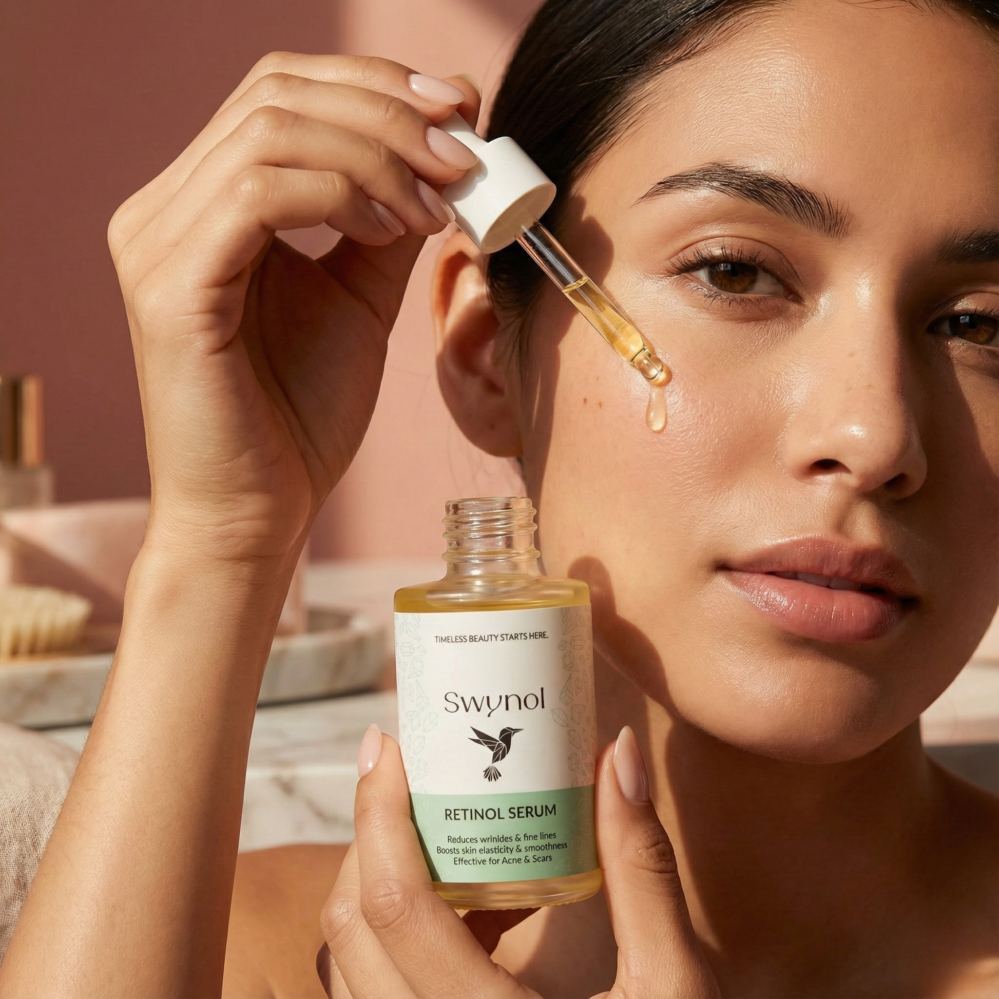 2. Apply 2–3 drops evenly over the face, avoiding the eye area.